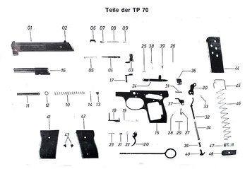 Die Vergabe von Waffennummern erfolgte nach Wunsch der Händler; die Waffennummern sind deshalb nicht konsistent fortlaufend. Jedes eigenständige Unternehmen, welches die TP 70 herstellte, nummerierte selbst. Innerhalb der jeweiligen Unternehmen wurde keine Nummer zweimal vergeben; auch nicht, wenn die Kaliber unterschiedlich waren. Für spätere Pistolen wurden von der KORRIPHILA-Präzisionsmechanik GmbH die Buchstabenpräfixe bzw. -suffixe A, B und EBy verwendet. Das Präfix A findet sich nur auf Waffen in 6,35 mm Browning, B nur auf Waffen in .22 l.r.